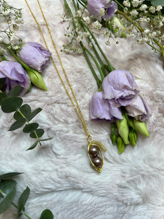 Peapod Necklace - Dusty Rose Glass Pearls