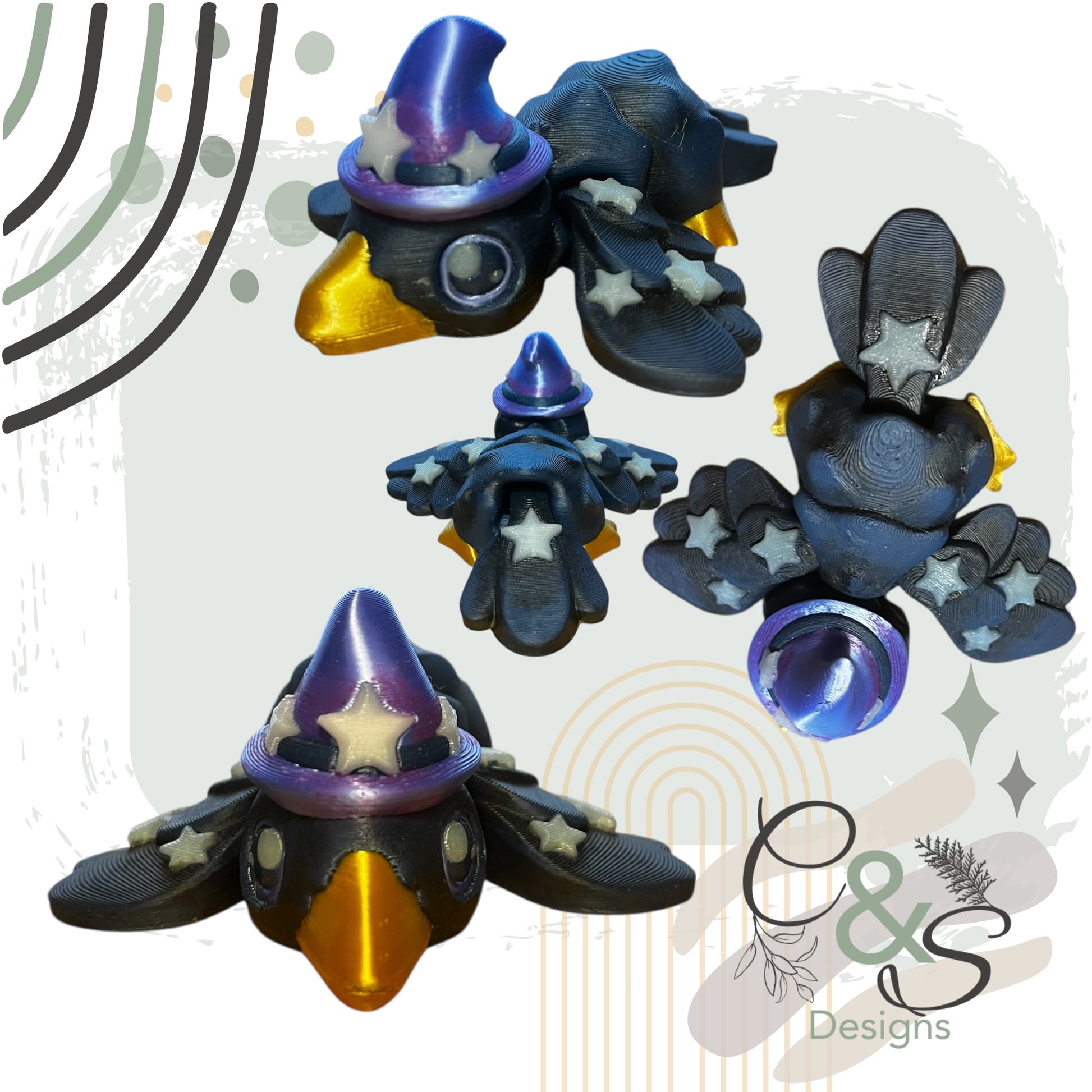 This adorable Crow was created by Layers in Green and expertly 3D printed by us using Playmaker PLA, a high-quality, eco-friendly filament. Each piece is printed at a fine layer height to ensure smooth details, strength, and durability.