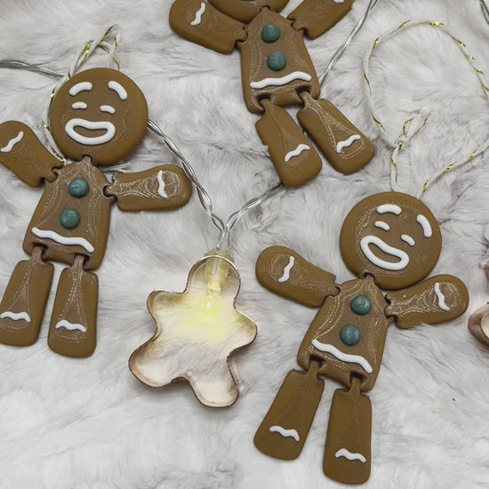 Articulated gingerbread man. Great fidget toy or ornament. Comes with the thread for hanging as shown in the picture. Has a couple different options of gumdrop colors. Printed with multiple color printer.